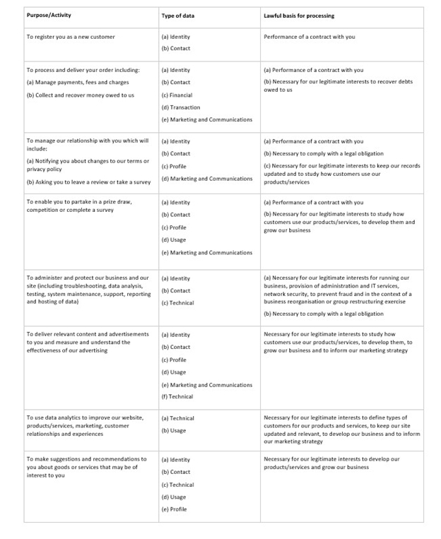 Set out below is a description of the ways we intend to use your personal data and the legal grounds on which we will process such data. We have also explained what our legitimate interests are where relevant.